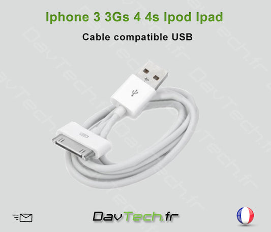 Cable USB Blanc pour iPhone 3 / 3GS / 4 / 4S / iPod & iPad