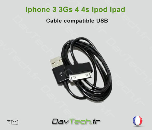 Cable USB Noir pour iPhone 3 / 3GS / 4 / 4S / iPod & iPad
