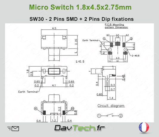 Micro switch 1.8x4.5x3.5mm 4 pins SMD bouton poussoir push