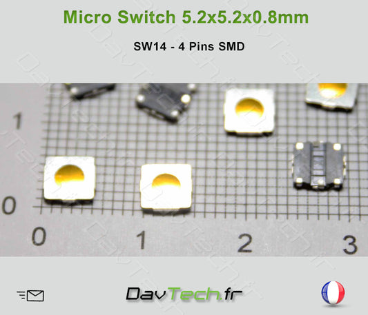 Micro switch 5.2x5.2x0.8mm 4 pins SMD bouton poussoir push