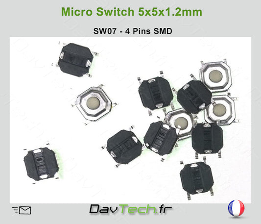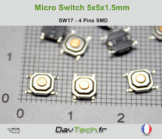 Micro switch 5x5x1.5mm 4 pins SMD bouton poussoir push