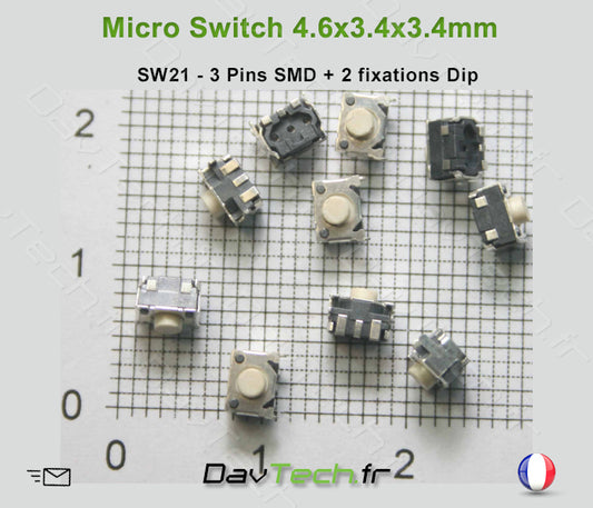 Micro switch 4.6x3.4x3.4mm 5 pins SMD bouton poussoir push