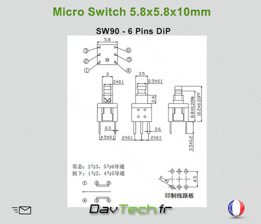 Micro switch 5.8x5.8x10mm 6 pins DiP buton poussoir push