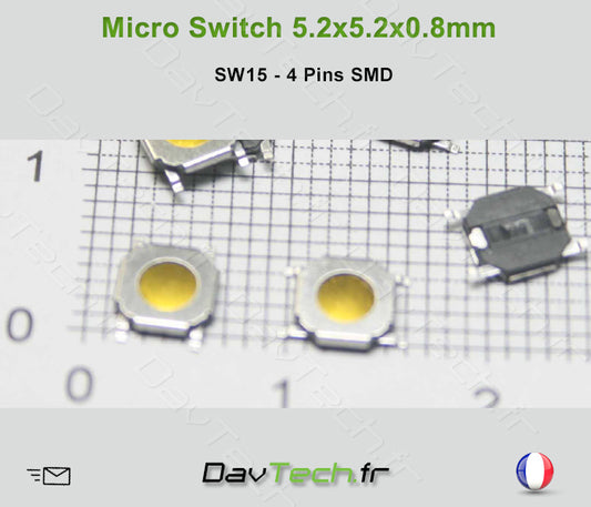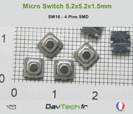Micro switch 5.2x5.2x1.5mm 4 pins SMD bouton poussoir push