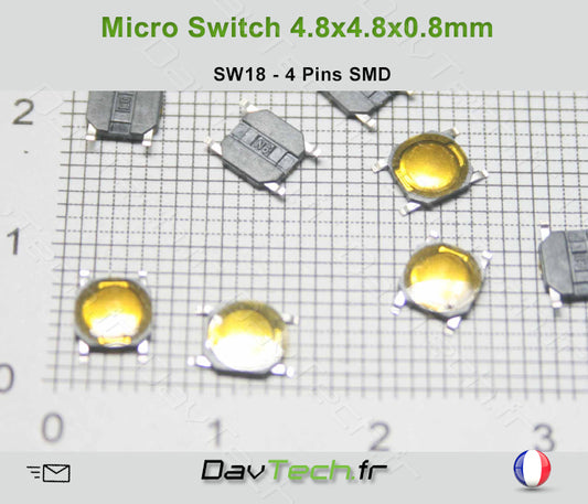 Micro switch 4.8x4.8x0.8mm 4 pins SMD bouton poussoir push