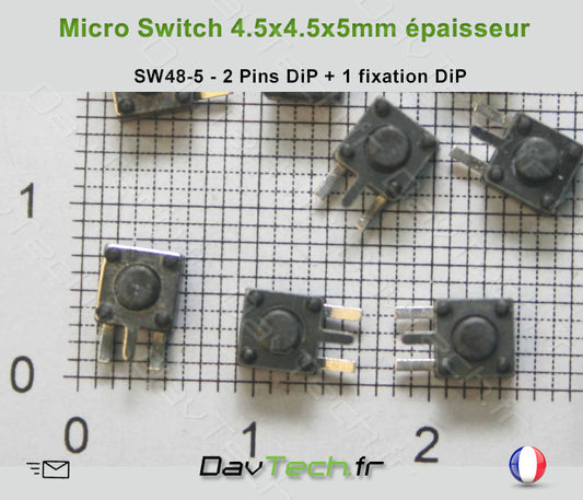 Micro switch 4.5x4.5x5mm 3 pins DiP bouton poussoir push