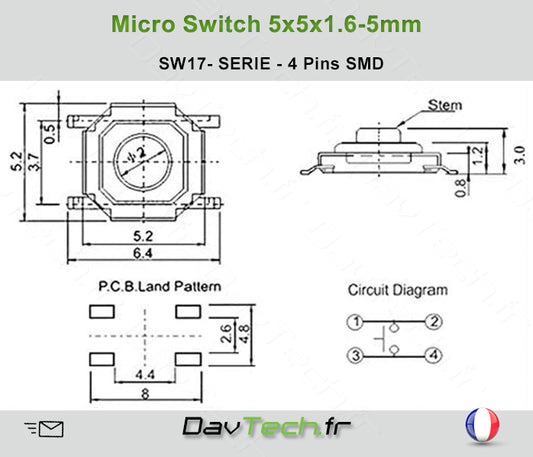 Micro switch 5x5x2.3mm 4 pins SMD buton poussoir push (Copie)