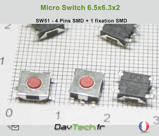 Micro switch 6.5x6.3x2mm 5 pins SMD bouton poussoir push