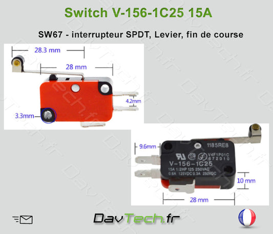 Switch à levier, frein de course à 3 pins SPDT bouton poussoir push