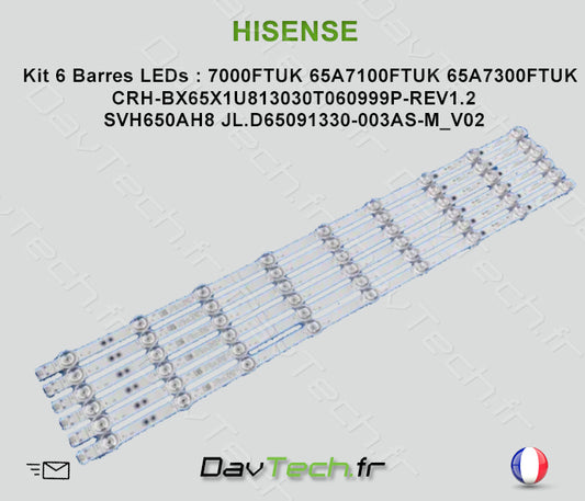 Kit 6 Barres LED rétro-éclairage Hisense 65A7100FTUK 65A7300FTUK A7000