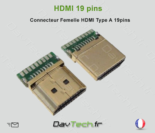 Connecteur prise Femelle HDMI 19 Pins avec PCB carte