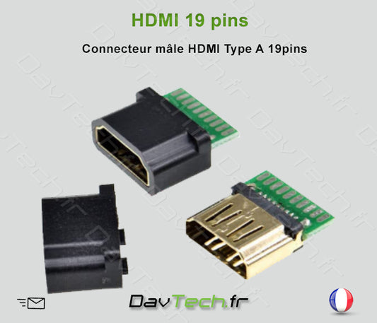 Connecteur prise Mâle HDMI 19 Pins avec PCB carte + capot