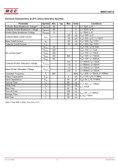 2F SMD transistor MMBT2907 / MMBT2907A / MMBT2907ALT1G SOT-23 PNP
