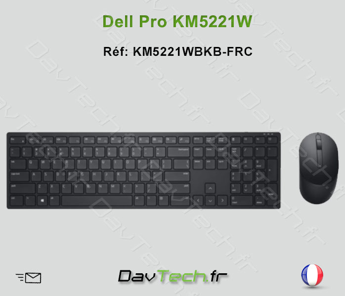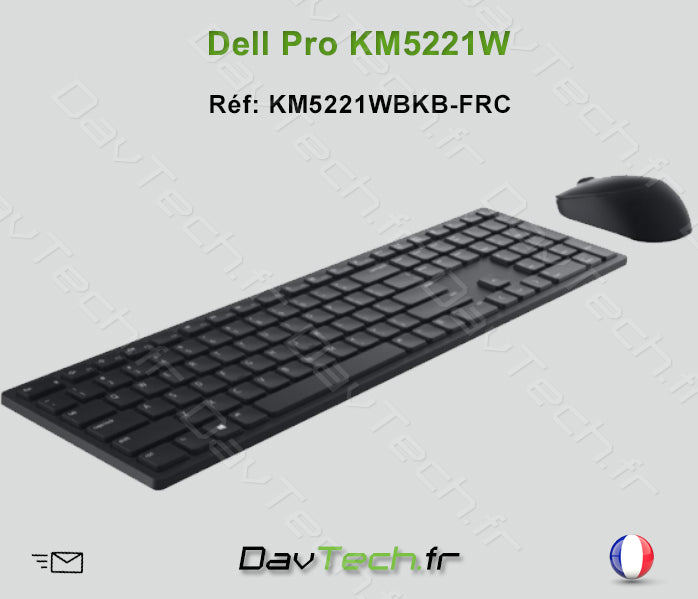 | Description du produit | Dell Pro KM5221W - ensemble clavier et souris - Français canadien - noir Périphérique d'entrée |