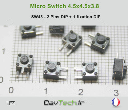 SW48 - Micro switch 4.5x4.5x3.8mm 3 pins DiP