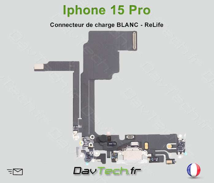 Nappe Connecteur BLANC de charge dock pour Apple iPhone 15 Pro - Reconditionné